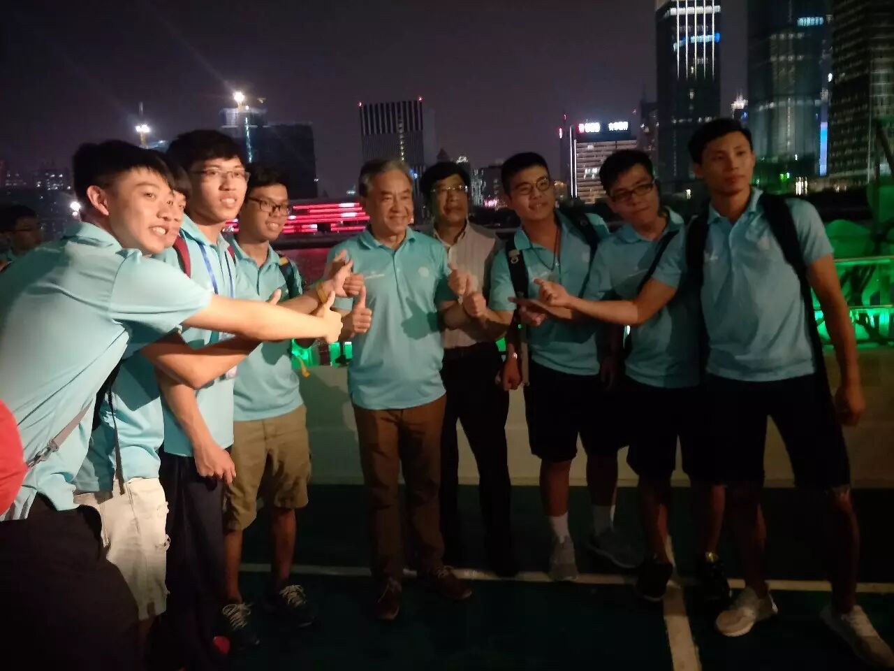 2017年7月8日晚上,大家在晚风徐徐中登上游船,夜游浦江。
